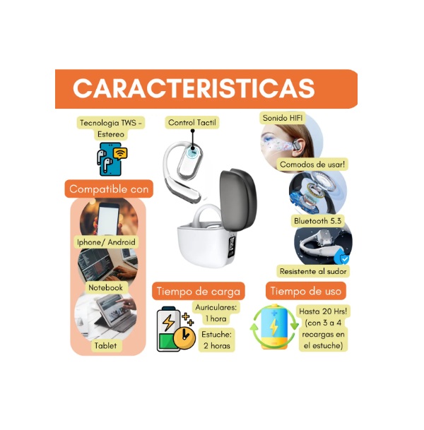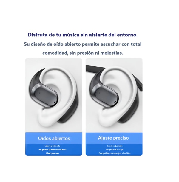 - 🎧 Diseño Open-Ear – Más cómodo, más seguro y sin tapar los oídos.