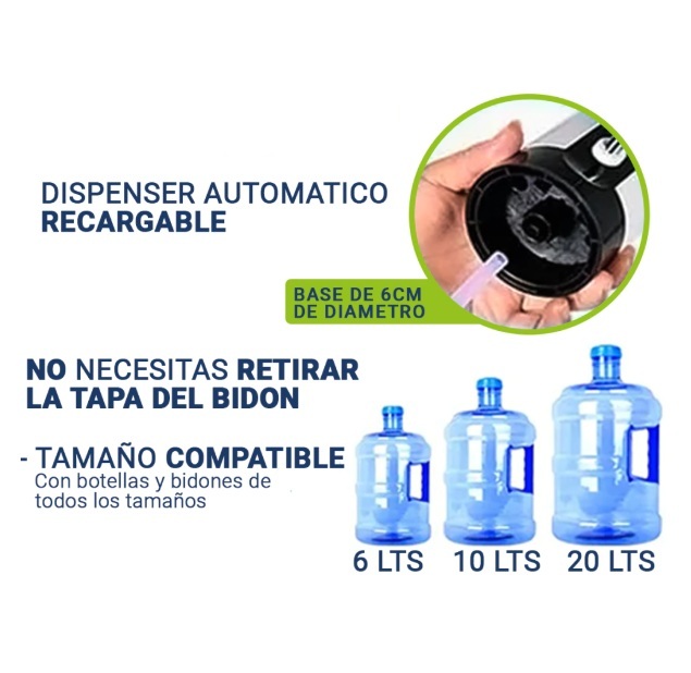 🔋💧 Bomba de agua portátil y recargable: práctica, segura y compatible con botellas de hasta 20 L. Con batería USB de larga duración, materiales de calidad y diseño compacto. ¡Agua pura al instante, donde sea! 🥤✨