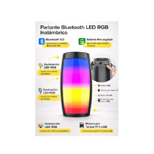 - 📏 Formato: Parlante de 2 pulgadas RGB