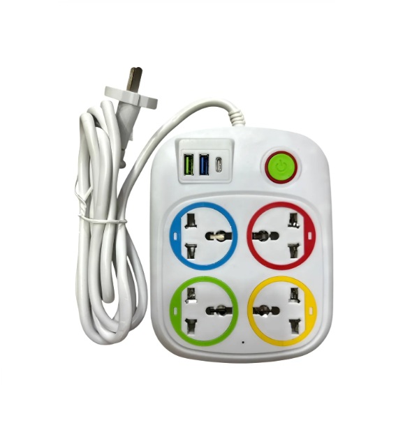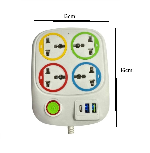- 🔌 Incluye 4 tomas universales + 2 puertos USB + 1 puerto USB Tipo‑C.